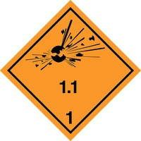 Nalepka ADR nr 1.1D - klasa 1 podklasa 1.1 grupa zgodności D - Materiały wybuchowe i przedmioty z materiałem wybuchowym (FOLIA) - 10x10cm (rolka po 250 sztuk nalepek)
